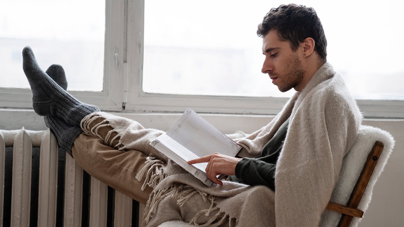 Мужчина читает возле батареи. Фото: Freepik